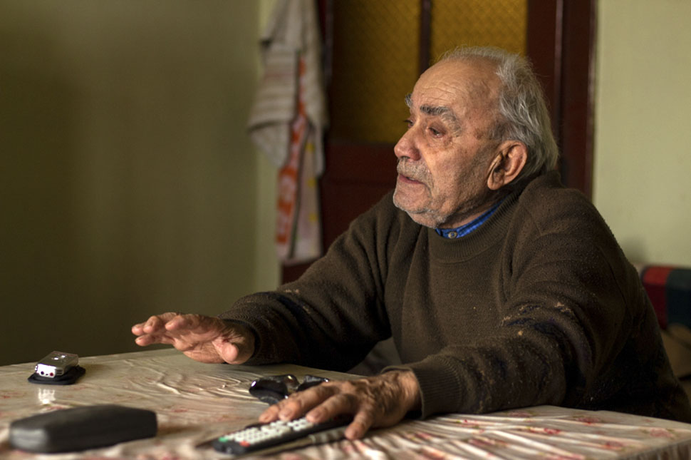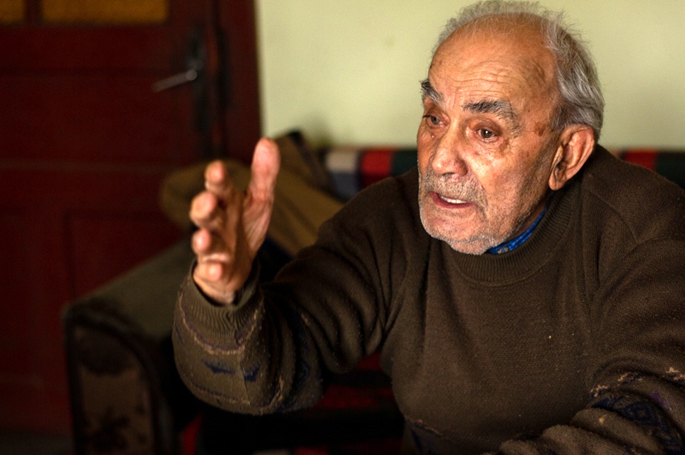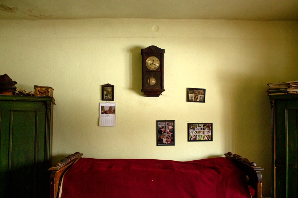 Közben kijövünk az udvarra, hogy megmutassa azt a kőfalat, ami még a régi házból maradt. Az udvaron a hó szépen el van seperve, mutatva a naponta bejárt ösvényeket a csűr irányába. Három tyúk és egy kutya él a közel kilencven éves emberrel, egyik gyermeke Segesváron, a másik Bethlenben él. Felesége két éve hunyt el, ötvenhárom évet töltöttek együtt.