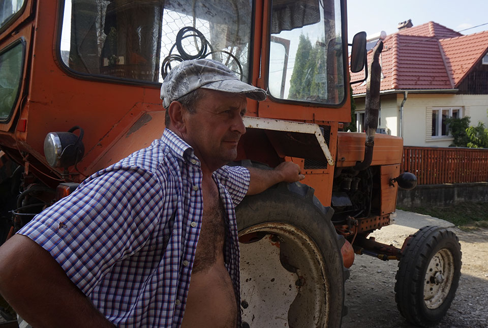 Tarcsafalvi Zoltán falufelelőssel futunk össze, aki traktorával igyekszik valamerre. Kíváncsiak vagyunk arra, hogy milyen új információval rendelkezik, mikor lehet csatlakozni a rendszerre. 22 állata van, azokat itatni kell. Neki szerencséje van, mert a kapun belül négy kút szolgálja a gazdaságot, így nincsenek víz nélkül.