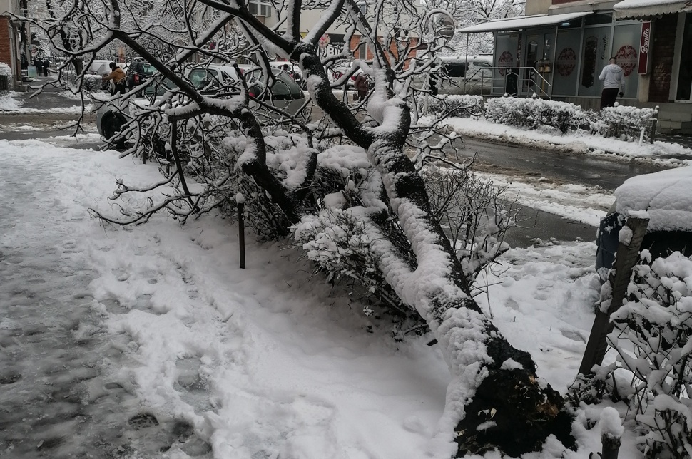 A Kisköved utcában a hétvégi havazás után két fa is megsérült: az egyiknek egy nagyjából másfél-kétméteres ága törött le, egy másik pedig kidőlt.