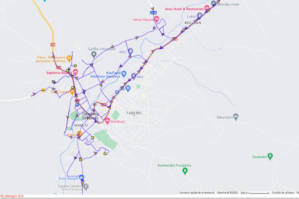 „Lehetséges, hogy a teljes Szabókban nem ment végig az autó. Az a helyzet, hogy több elágazása van az utcának” – mondta el portálunknak Dénes András, a városháza hótalanítással foglalkozó munkatársa. Az autók útját követő, általa elküldött képek szerint valóban van az utcának egy szakasza, ahol nem járt vasárnap a sószóró kocsi, és nemcsak vasárnap, szombaton sem.
