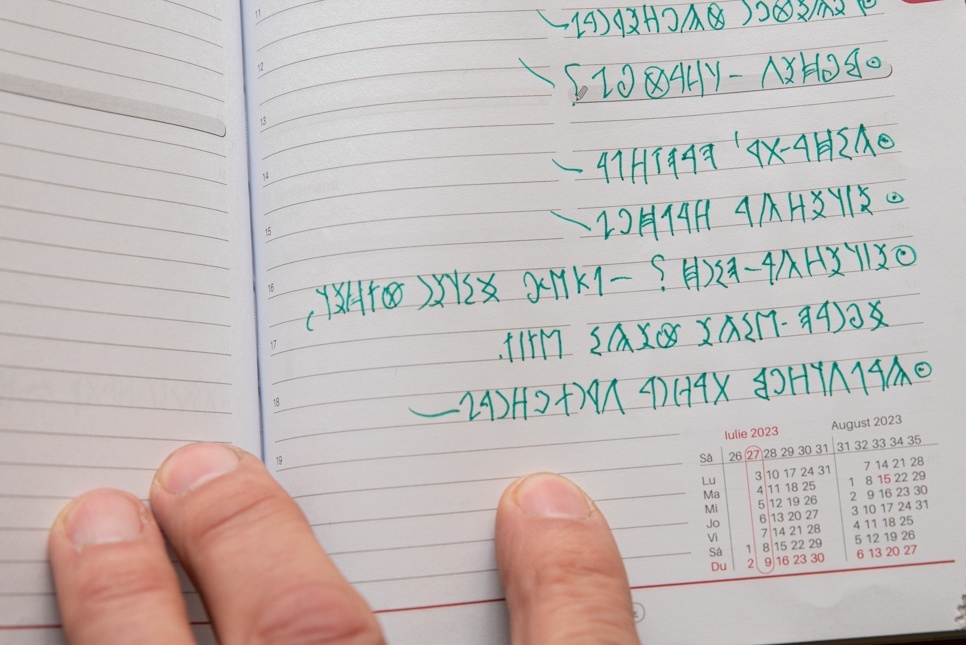 Udvarhelyszék gazdag rovásírásos emlékekben, elég ha Énlakát, Homoródkarácsonyfalvát, Vargyast, Székelydályát, Rugonfalvát, Bágyot vagy Bögözt említjük. Beszélgetőtársam gépészmérnökként dolgozik a városban, az ezredforduló után az utcán sétálva találkozott újra a rovásírás titokzatos világával.