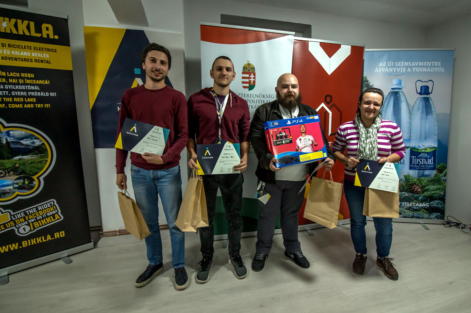 A Kállai Emánuel, Kurkó Alajos Alfonz, Székely Zolta, Zsidó Enikő és Csont Zsombor összeállítású csapat a környezetvédelmet választotta, mint problémát, tíz órát töltöttek az ötleteléssel és a maradék harmincnyolcat a prototípus kivitelezésével.