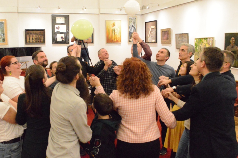 A kerekasztal-beszélgetés végén aztán közös lufijáték következik: egymás kezét fogva kell a levegőben tartsák a színes lufikat, egy sem eshet le a földre. A résztvevők sikeresen vették ezt a játékot, ám a többi még hátra van.