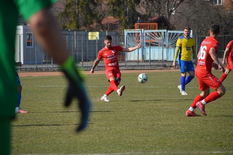 Majdnem félórát kellett várni az első kimondottan kapura tartó udvarhelyi lövésre, Simó eresztette rá több mint húsz méterről, de ez nem jelentett gondot Petrescunak. Majd a 29. percben az udvarhelyi dominancia ellenére váratlanul a vendég együttes szerzett vezetést, távolról talált be a hosszúsarokba Cosmin Turcu (0-1).