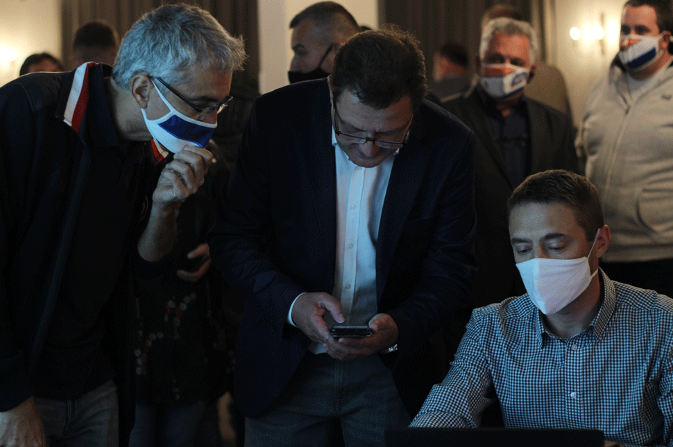 A POL csapata az Areoban gyülekezik, mondhatni telt ház van, jelöltek és támogatók egyaránt jelen vannak. A szabály az szabály, beltérben maszkot osztanak és kérik, vegyék is fel. Nagy a zsivaj, közben sms-ben küldenek infókat a szavazókörzetekből. Ember Attila kampányfőnök mondja be, Jakab Attila (civilben városmenedzser) vezeti be az adatokat a kivetítőnél
