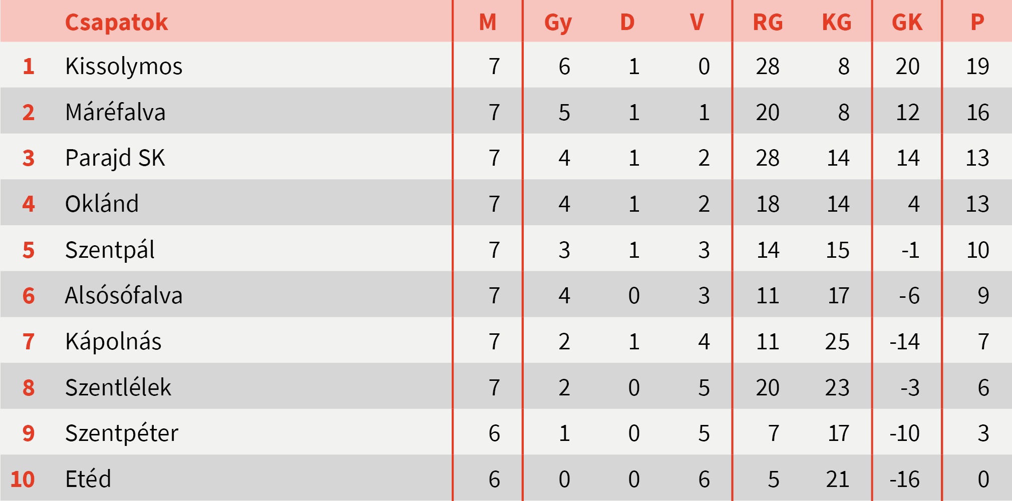 A 6. Ligában Kissolymos kihasználta az éllovas Máréfalviak szentpáli vereségét, és 8-0-ra legyőzve Kápolnást vették át a vezetést csoportjukban. A Parajd SK továbbra is őrzi harmadik helyét.