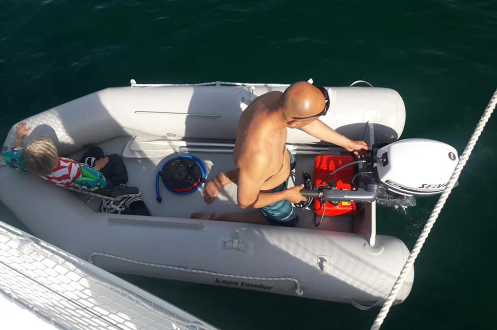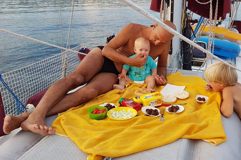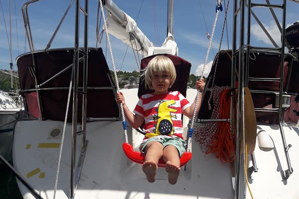 Jutka: Huh, nagyon át kellett gondolnom, hogy a most négyéves fiammal hogy legyen. Én elvégeztem az óvónő-tanítóképzőt is, van egy tervem, hogy foglalkozom vele a hajón, elsősorban kézimunkára gondoltam, van három kézműveskedős dobozunk előkészítve, hogy a képességfejlesztést megoldjuk. Ő nagyon aktív, rengeteget szalad, biciklizik, mászik, kihívás lesz fizikailag lekötnünk.