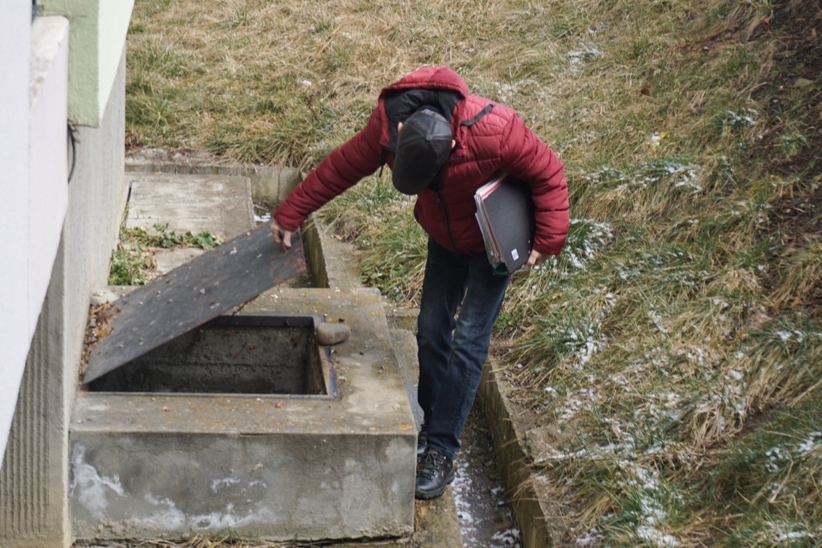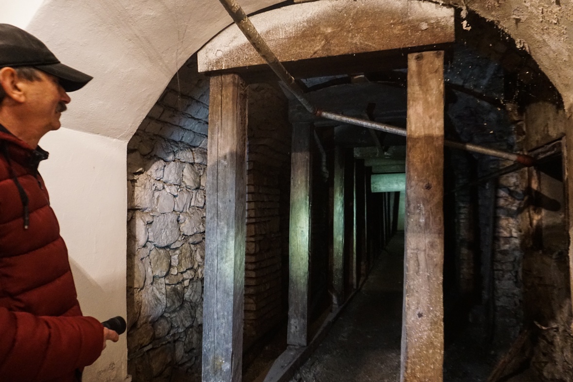 Egy szűk, faoszlopokkal megerősített, alagúthoz hasonló folyosó előtt állunk, ez vezet az óvóhelyhez. Fényforrás híján nem is látni a végét, így amikor a polgárvédelmi felügyelő udvariasságból előreenged, néhány másodpercre megfagy a levegő, míg zseblámpát gyújt, így már ellátni a körülbelül 10 méter hosszú folyosó végéig, és – egy kicsit nagyobb bátorsággal – elindulunk.