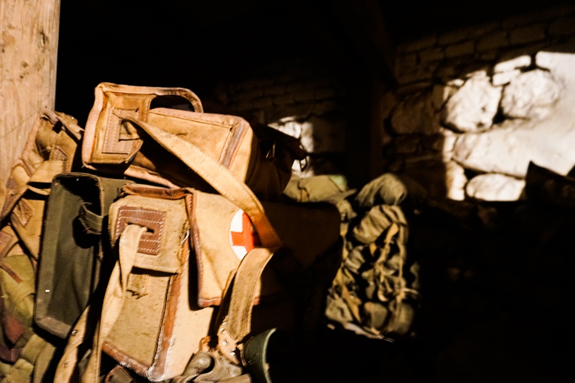 Háborús filmbe illő látvány fogad, ahogy belépünk a városháza dohos óvóhelyére, mely igazán muzeális hely: a fapadokon egymásra rakott katonai hátizsákok, egészségügyi ládák, vöröskeresztes táskák, gázmaszkok, kábelkötegek – ‘89-ből fennmaradt használati tárgyak egymásra rakva. A rajtuk megtelepedő pormennyiségből ítélve régóta állhatnak így, érintetlenül.