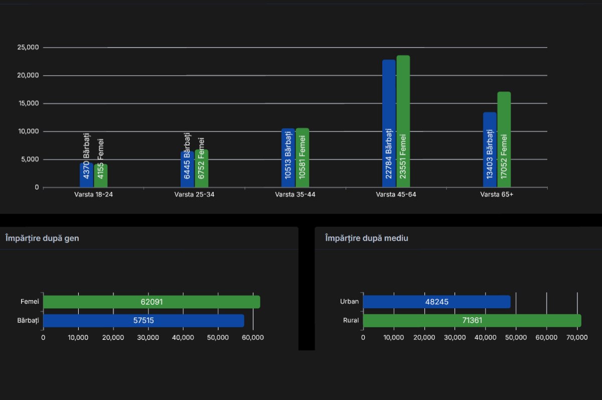Mivel nincs ilyen szűrés a programban végignéztük a megye városainak a statisztikáit, és szúrópróba-szerűen néhány nagyobb községet: a városi nők nagyobb arányban szavaztak, mint a férfiak. A vidéki településeken van olyan is, hogy minden generációban férfimunka volt a szavazás (Oklánd) és van olyan is, hogy minden generációból a nők mentek el többen vagy ugyanannyian voksolni (Karcfalva). A teljes megyében a szavazók 51,9 százaléka, 62.091 volt nő. 57.515 férfi voksolt vasárnap.
