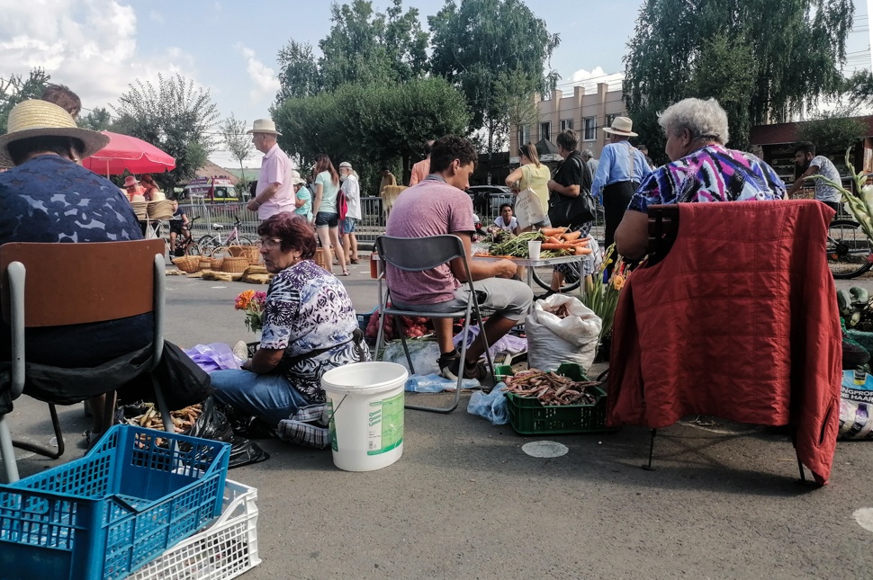 Zajlik az élet fél tíz körül kedden a városi zöldségpiacon: gyerekek fogócskáznak a standok között, mindjárt a bejáratnál oldalt három-négy asztalnál bácsikák ülnek a feleseik mellett, és közben szagolják a hotdogos-hamburgeres-gyrosos standból áradó illatokat. „Jó, ha van idő piacra jönni, mi?” – mondja az egyik férfi a másiknak, majd megállnak, és hosszasan csevegnek a paradicsomok és padlizsánok között a családjaikról, az árakról, meg mindenféléről, ami eszükbe jut. Árusokból és vásárlókból sincs hiány: szinte az összes asztal foglalt, a leghátsó standok üresek csak; maszkokból és gumikesztyűkből már annál inkább van: alig látni elvétve egyet-egyet.