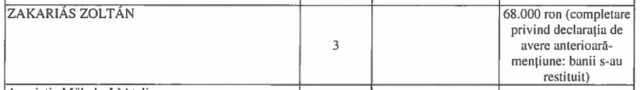 Egy másik 2021-es vagyonnyilatkozatában Lóci pontosít, hogy a Zakariás által kölcsönkért összeg 68 ezer lej volt, és megjegyzi, hogy a képviselő azóta visszaadta.