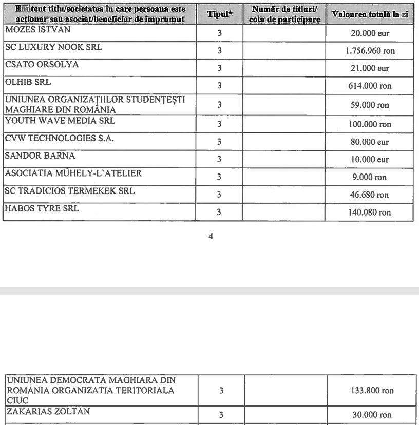 Egy másik politikailag érdekes kölcsön a volt néppártos Zakariás Zoltánnak adott kölcsön. Zaki, akit kritikusai azzal vádolnak, hogy megélhetési politikus, és már 2012-ben a pártja, akkor még az Erdélyi Magyar Néppárt, ki kellett, hogy fizesse az adósságait, hogy indulhasson a választásokon, 2020-ban EMSZ-es vendégutasként indult az RMDSZ listáján, és az RMDSZ szenátorától kért kölcsön 30 ezer lejt, valószínűleg kampányra.