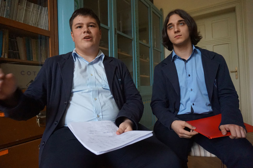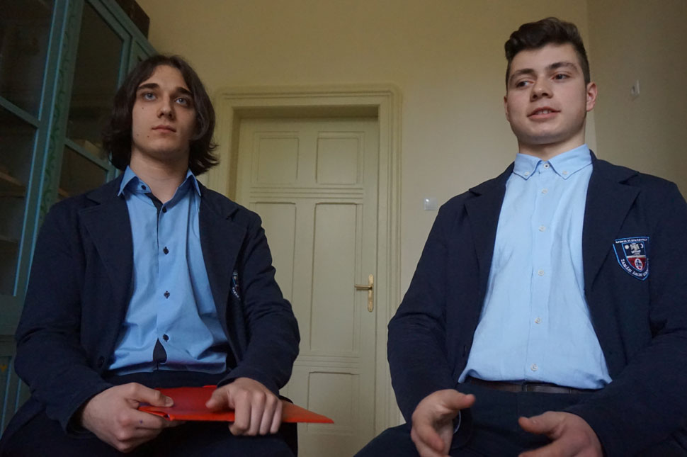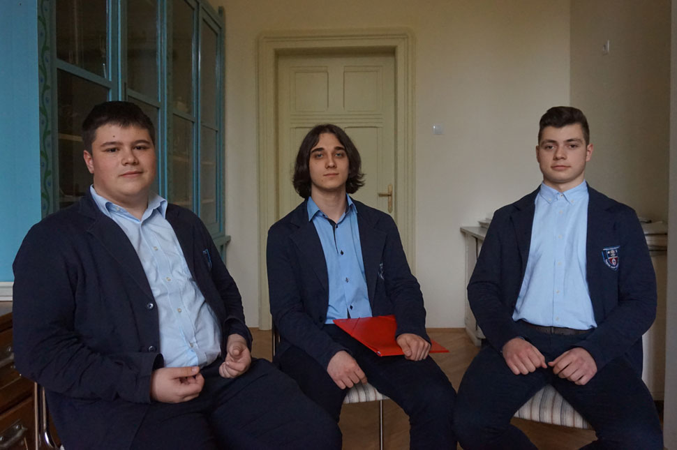 Zajzon Zalán, Molnár Dávid és Kiss Péter mindhárman a Gimi X.A osztályának diákjai. Vezetőtanáruk, Dimén-Varga László árulta el, hogy éppen a hétvégi Középiskolások Üzleti Tanácsadó Versenyének döntőjére készíti a csapatát, amelyet Kolozsváron rendeznek meg.
