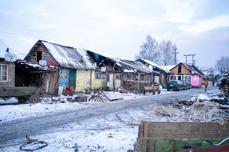 Már az utca elején ismerős arcot látunk meg egy sötét autóban, Sándor képviselő biccent oda nekünk. De nem ő az egyetlen, akivel már találkoztunk aznap korábban, többen értek a telepre még előttünk az arénából: kicsit meg is lepődnek, amikor megpillantanak minket, majd behúzódnak a házakba.