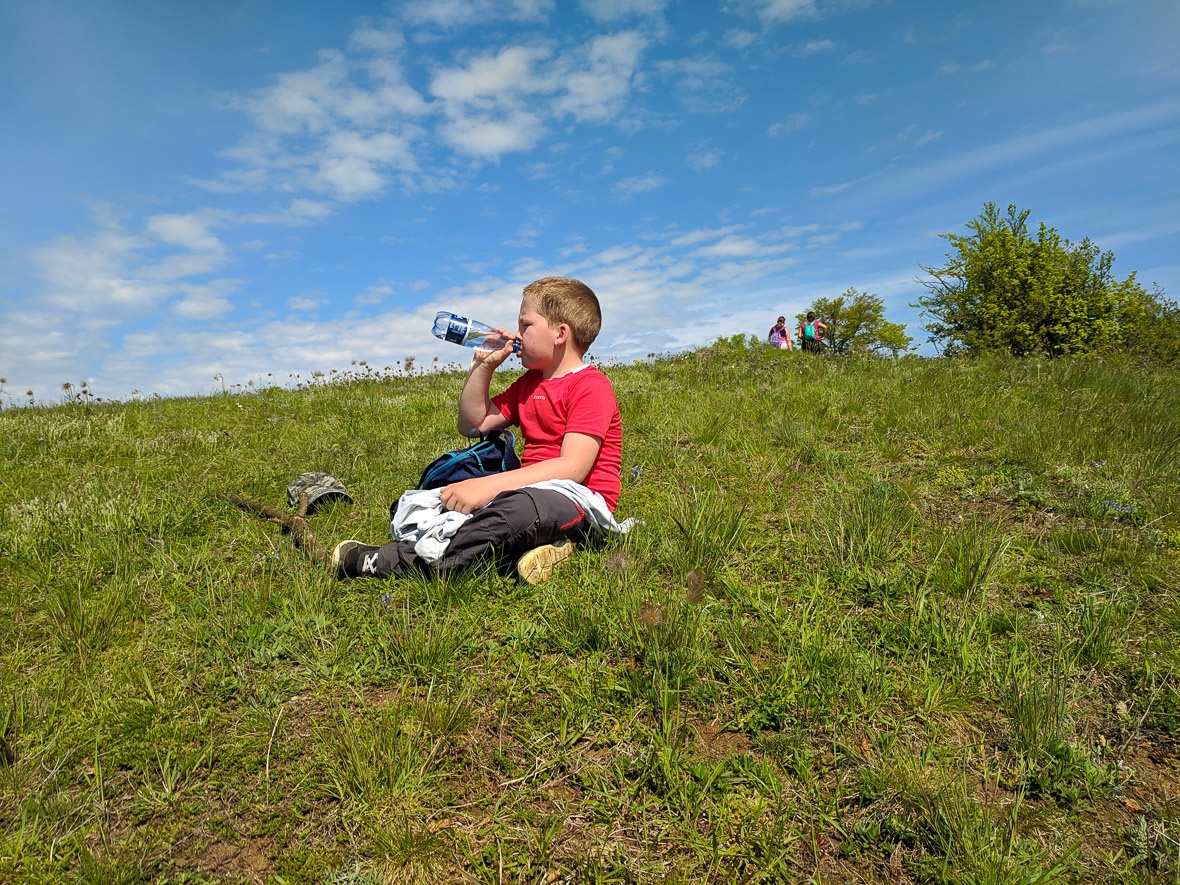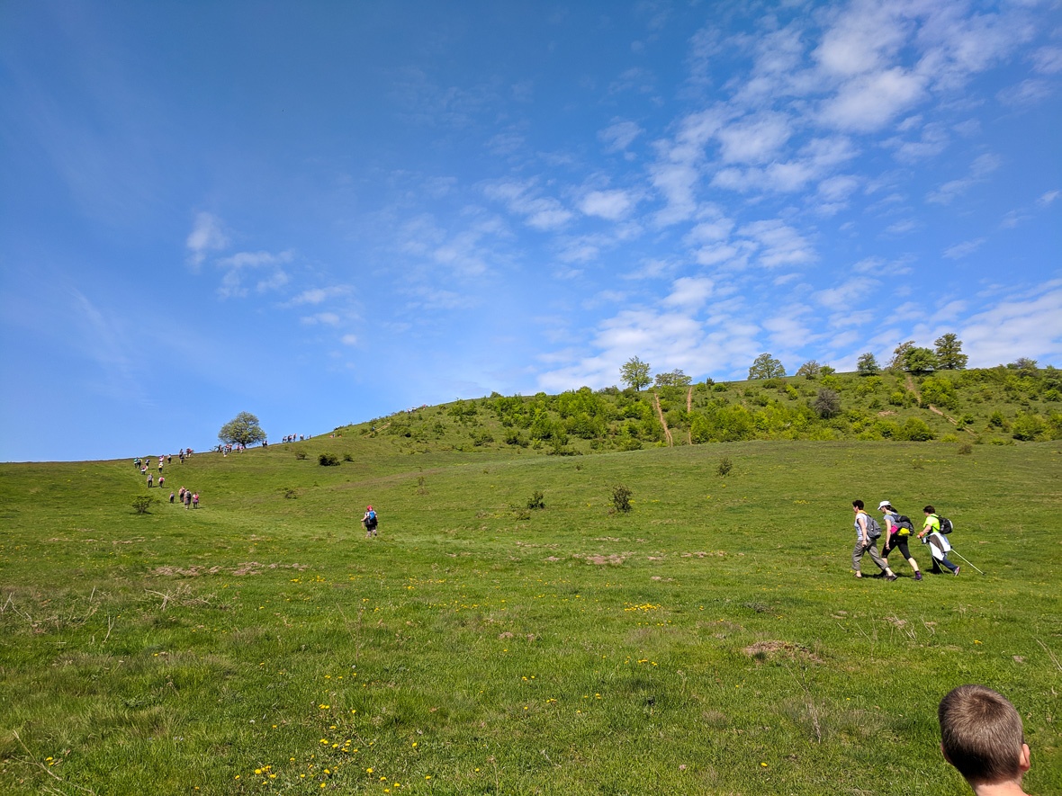 A Rezről leereszkedtünk Tibódba, ahol belebotlottunk nagynénémbe, de időm se volt pár szót váltani vele, a drága fiam úgy elrohant, hogy kellett rohannom utána. Hiába, na, neki ez egy verseny, még akkor is, ha hivatalosan nem az. Ha valaki tud egy olyan természetben szaladó csapatot, ahova befogadnak egy kilenc éves gyereket is, szóljon, kérem, mert én már vén vagyok, s unok szaladni a természetben, sokkal jobban szeretek lassan menni, s megfigyelni. Szóval Kukuc után eredtem, s itt ezen a legyekkel teli réten értem utol, ahol úgy amúgy semmi izgi nincs, de mit tegyünk, ha a Jóisten nem rakta egymás mellé a Rez és a Budvár hegyét, hanem a kettő közé bepottyantotta a Horváskát is.