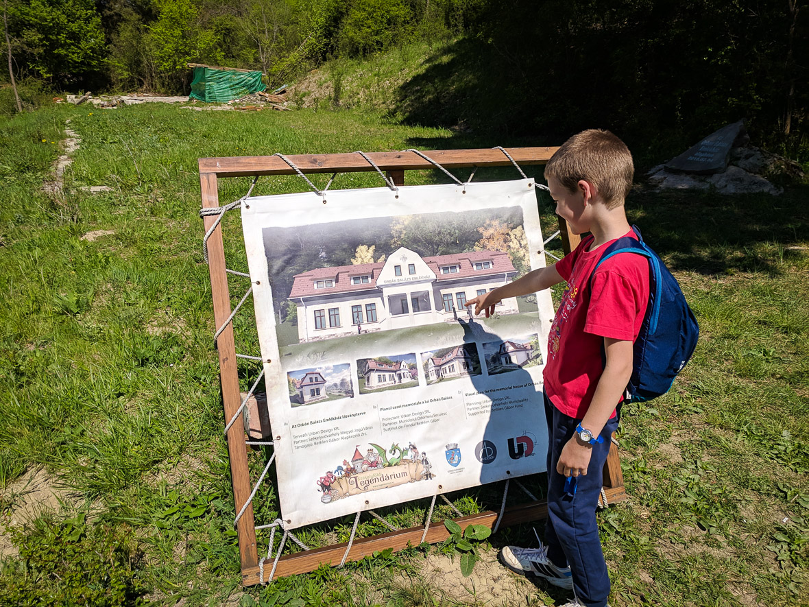 Orbán Balázs sírja mellett érünk ki, Kukuc nézi az emlékház látványtervét, s kérdi: „Pont így fognak állni itt a két csaj s a pasi?”