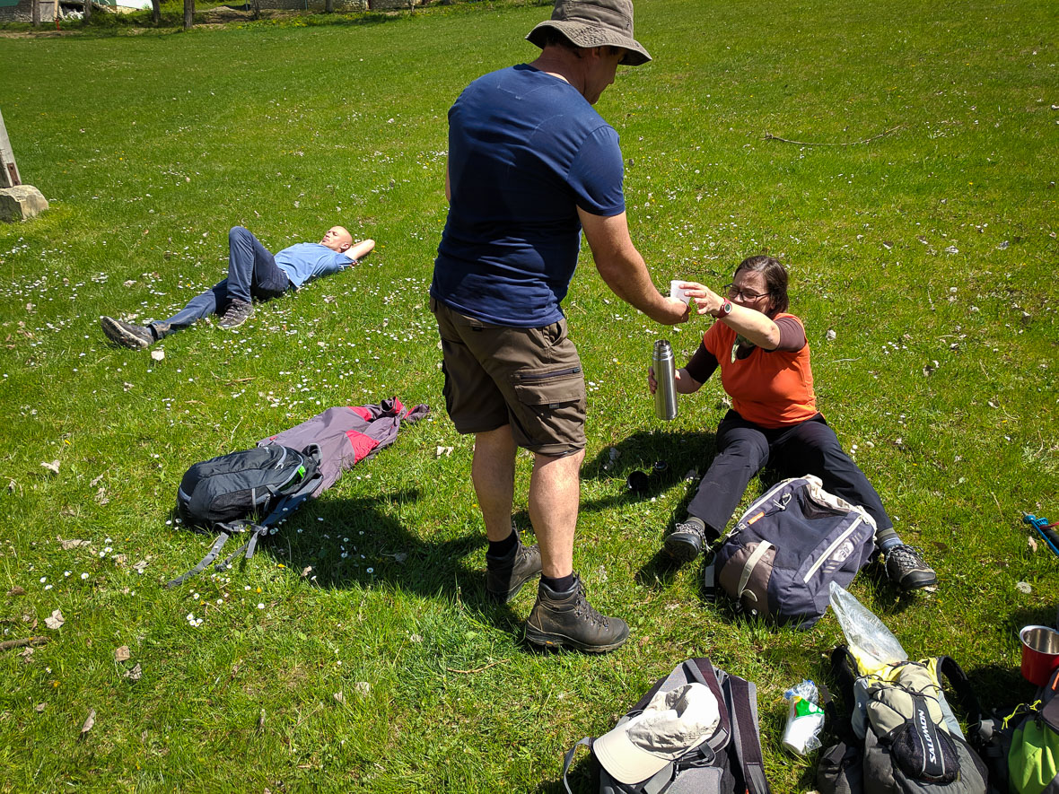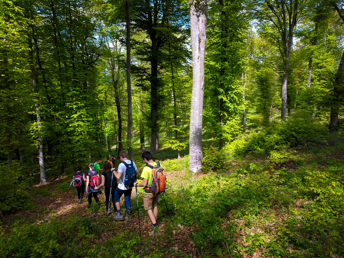 Nekivágunk a Reznek, ami hirtelen emelkedőből épp elég egy napra. Ennek az egymás fenekében menésnek megvannak az előnyei s a hátrányai. Például lehetetlenség eltévedni. Vagy ha eltévedsz, akkor mindenki eltévedt, és mégsem érzed annyira frusztráltnak magad, mert nem te vagy a hibás, hanem a többiek. Másik előny: ha kíváncsi és szociálisan nyitott fajta vagy, megtudhatod, mit ettek tegnap az előtted menők. Sőt, akkor is, ha nem vagy kíváncsi. Az emelkedővel járó fokozott fizikai terhelés elősegíti a folyamatot. Csodálatos érzés egy közösséghez tartozni!