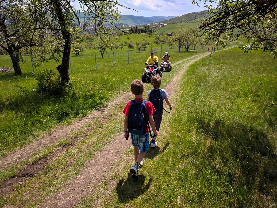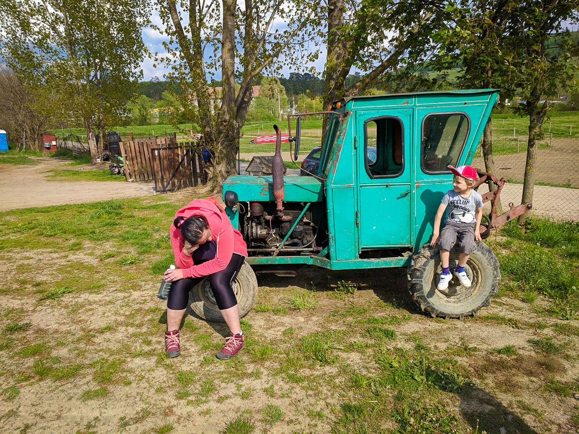 Még nehezebb ügy a motormentes természetjárás. Semmi baj, lehúzódunk, hogy elférjenek. Aztán két perc múlva ismét lehúzódunk, ezúttal teljesen, mert hátulról jönnek. Ugyanők, megfordultak. Apa és fia, a gyerek nem lehet sokkal nagyobb, mint az enyém a nagyobbik. A legjobb bizonyíték arra, hogy a gyerek utánzással tanul. Az enyém is, az övé is. Ettől szép a világ, hogy másak vagyunk. Csak egészség legyen!