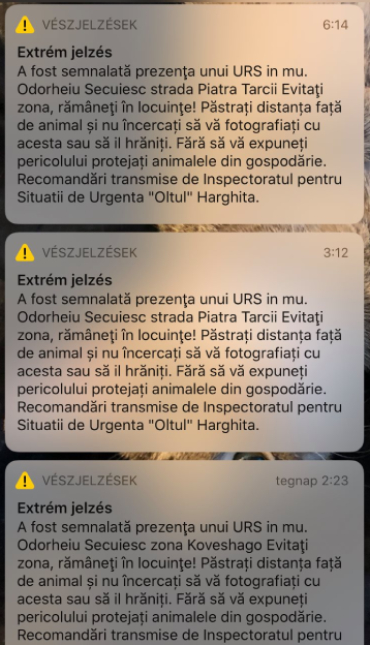 A csendőrség és a sürgősségi helyzetek felügyelősége figyelmeztet, hogy minden esetben, ha medvével találkozunk, hívjuk a 112-t, ne fotózzuk és ne etessük a vadállatokat. A RO-Alert kiküldése az ISU, azaz a sürgősségi helyzetek felügyelőségének a felelőssége.