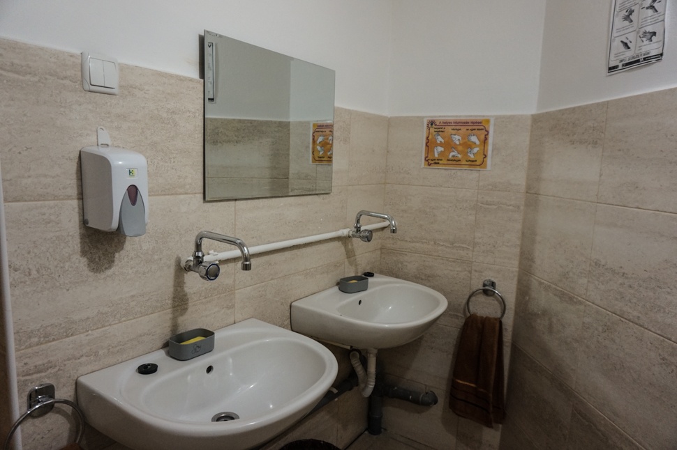 Az összes helyiséget kimeszelték, a nyílászárókat kicserélték, a fürdőszobák új burkolatot, mosdó-és vécékagylókat kaptak, színben hozzáillő, új törülközők lógnak a szárítókon. A pici iroda is új bútorzatot kapott: öten dolgoznak benne.