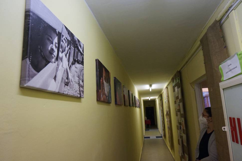 A szociális központ épülete a Küküllőhöz legközelebbi tömbház földszintjén található. Egyik oldalon a költözésben levő hajléktalanszálló, balra a Caritas délutáni foglalkoztatója van. Mi balra térünk, itt viszont már szembeötlő a különbség. A tér nem lett nagyobb, továbbra is borzasztó szűk a központ folyosója, de legalább friss a meszelés a falakon, vidámabb a sárga, mint a régi kopott fehér és zöld, a padlót pedig világosabb színű linóleum borítja a régi mozaik beton helyett. A falakon friss, modern dekoráció, a központ gyerekeit ábrázoló képek.