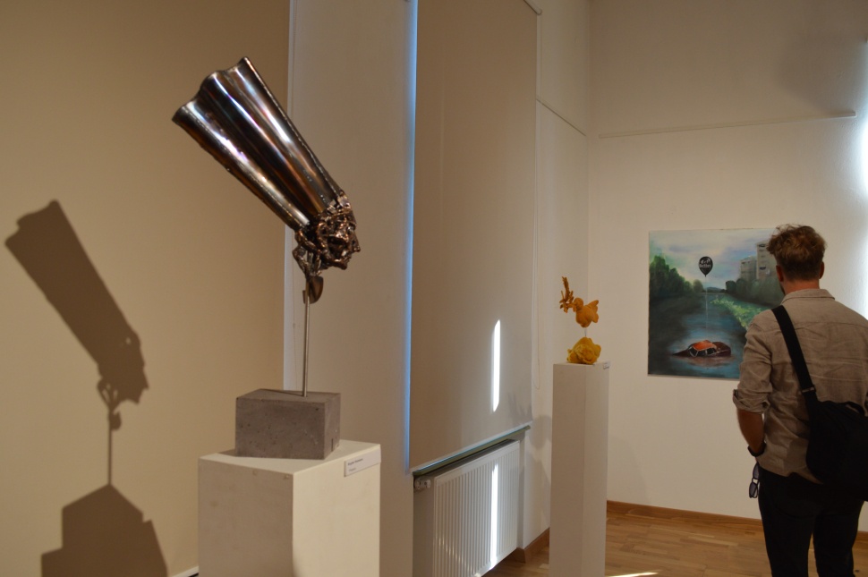 Amint azt Vécsi Nagy Zoltán elmondta, Bogdan Nueleanu temesvári szobrászművész a szobrászat és a festészet határterületén a különböző fémek egymáshoz rendelésével kísérletezik: talált törtfémekből, tulajdonképpen hulladékokból, fogaskerékből készítette a kiállított műalkotásait.