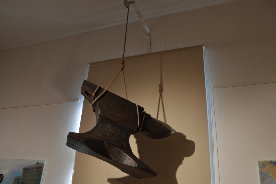Nem mered?– ezt a címet adta a táborban készült műalkotásának Veress Gábor Hunor marosvásárhelyi szobrászművész, akinek magasba húzott interaktív kovácsüllőjét némi fekete humor is átszövi – ismertette a jelenlévőkkel a művészettörténész.