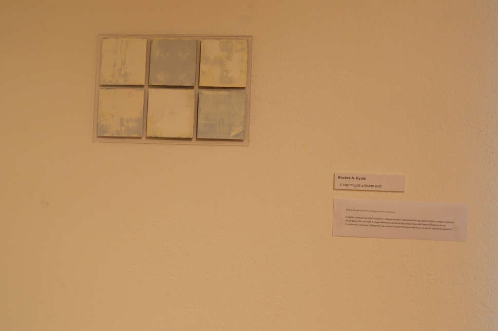 Kovács A. Gyula, a Csongrád-Budapest között ingázó sokoldalú képző- és médiaművész ezúttal fotográfus minőségében „a fény leképezésének ihletett kutatójaként van jelen" – fogalmaz Vécsi Nagy, röviden ismertetve a folyamatot: egy talált régi Polaroid fényképezőgépet használt fel munkája során: a tipikus Polaroid keretből kivágta a képeket, majd széthúzta, mint a papírzsebkendő rétegeit. Belül részben esetleges absztrakt grafika képződött, melyet végül a Polaroid gép hátsó fényvédő fekete fóliája hordoz.