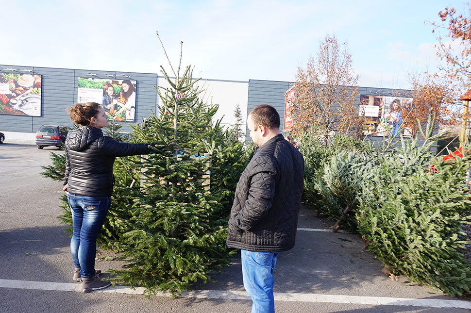 A Kaufland parkolójában is kinőtt egy kisebb erdő, ami tulajdonképpen a terelő úti fatelep kistestvére. Ugyanazokkal az árakkal dolgoznak, az ezüstfenyők 90-100 lejért kaphatók, a normandokért 120-290 lejt is oda kell adni.