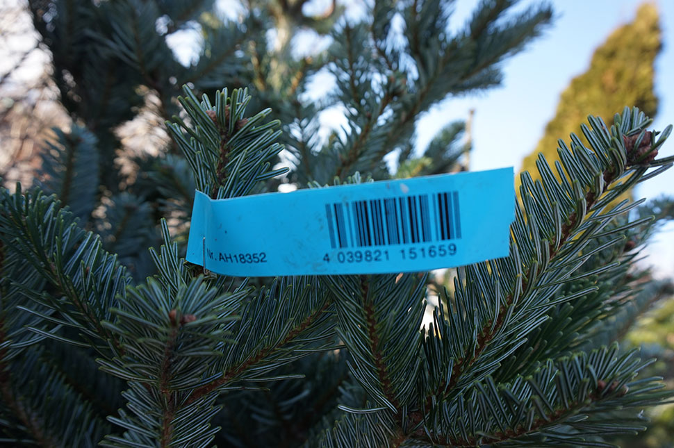 Az árus szerint a fenyők tetején a címke a méretet jelöli, a sárgák a legkisebbek, a pirosak a legnagyobbak. Azt is hozzátette, hogy a sima címkék az első osztályt, a csíkozottak másod-vagy harmadosztályú fákat jelölnek.