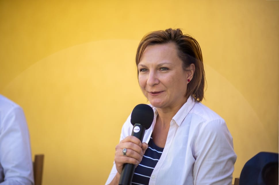 Pálfi Kinga a Szabad Emberek Pártjának bemutatkozó sajtótájékoztatóján szeptember 10-én, a Septimia Hotel teraszán