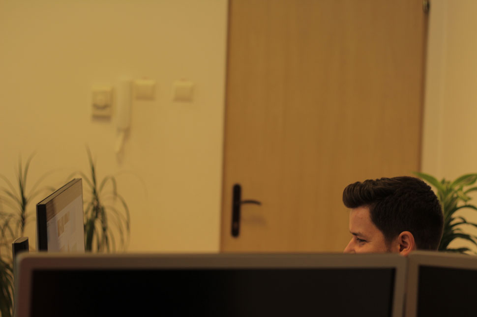 ahol valami nagyon súlyos fátyolos munka-ködöt zavarok meg. Egy pillanatra szétoszlik, amíg rám figyelnek, kilesnek a képernyők mögül. Márton Áron épp telefonál, ahogy rendszerint szokott, érezni lehet, ahogy ég mindenki keze alatt a munka. Azt érzem, hogy pillanatok alatt megértettem a pénzügyi eredményeket, de azért még megbeszéljük az interjú időpontját.