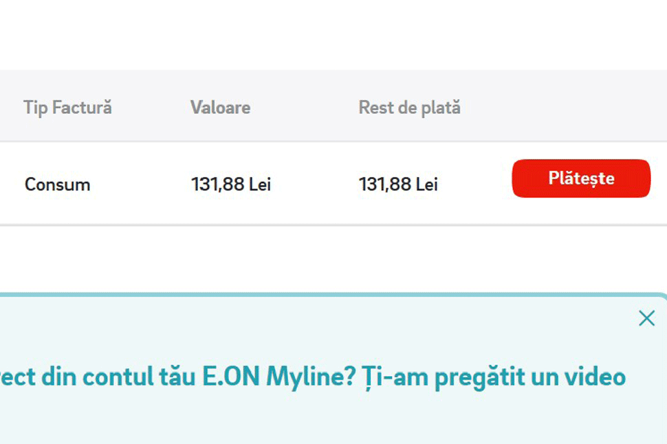 - Megjelenik a fizetetlen számláid listája, pipáld ki, amelyiket fizetni szeretnéd fizetni, és nyomd meg a piros Plătește gombot.