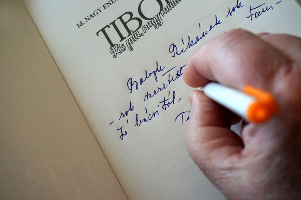 Ismét a tanító bácsi. Megtalálja, amit keres, beleír valamit. Nagy meglepetésemre és örömömre nekem ajándékozza.
