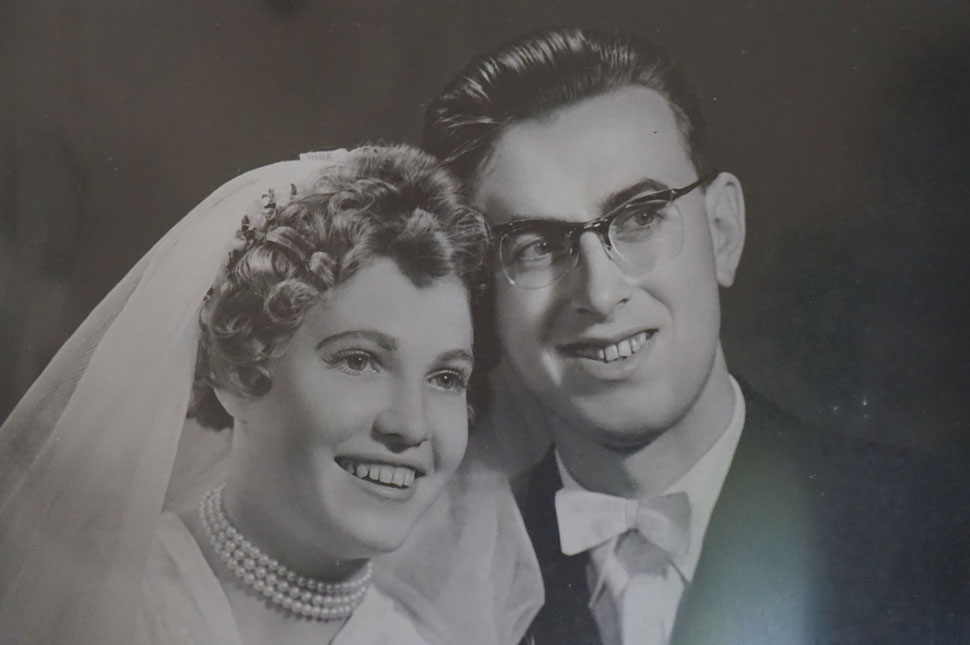 a tanító bácsi leakasztja a szoba faláról az esküvői fotójukat, a saját történetük kezdetét. Mosolyogva mesél.
