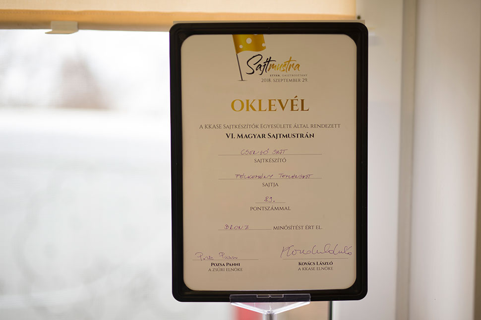 A versenybe két termékkel neveztünk be, gazdag volt a mezőny, végül a többszáz sajt közül a Csengő kapta a bronz minősítést. Ez azt jelenti, hogy egy évig ezt feltüntethetjük a csomagoláson mint minőséget jelző emblémát.