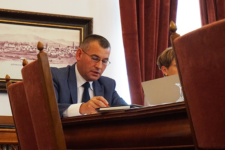 Szeretettel köszöntjük ezen a hideg csütörtöki napon olvasóinkat a városháza Orbán Balázs tanácsterméből. A mai tanácsülés kivételes, ugyanis a koalíció múlt havi hiányzásai miatt az RMDSZ tanácsosa, Arros Orsolya vezeti az ülést. 18 tanácsos van jelen, Berde Zoltán RMDSZ-es képviselő hiányzik. Az augusztusi tanácsülés jegyzőkönyvéről érdeklődik Arros, időközben megérkezett Berde Zoltán is.
