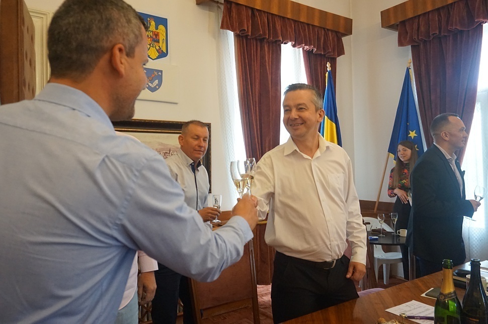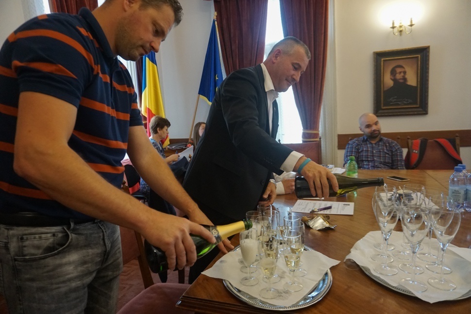 A tanácsülés berekesztése után a polgármester pezsgővel ünnepeltette az új alpolgármester megválasztását.