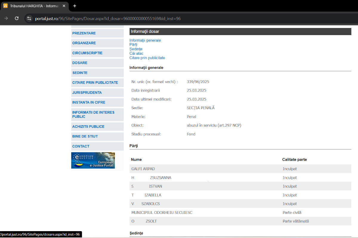 Hivatali visszaélés miatt vádat emelt az Országos Korrupcióellenes Ügyészség (DNA) Gálfi Árpád, Székelyudvarhely korábbi polgármestere ellen – derül ki az igazságügyi portálon, 2025. március 25-én közzétett dossziéból.