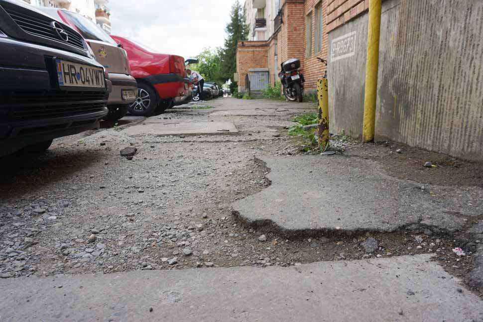 Nem csak a lakónegyedekben siralmas egy-két helyen az állapot, hanem a történelmi városközpontban is, érdemes megnézni például a könyvtár előtti járdát, de a ferences templom előtt sem különb. Igaz, ha meg volna tákolva, azt se tennénk ki a vitrinbe, de legalább járható volna.