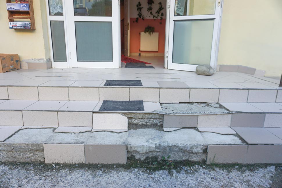 Néhány szemet szúró mulasztást leszámítva még mindig az egyik legszebb és legrendezettebb lakónegyednek mondanám. Ezt a széttöredezett lépcsőt például csak nem lehet olyan nagy dolog helyrehozni, de ha még sokáig így marad, akkor biztosan nem nyeri el a legrendezett tömbház díját. A vakolat is pattog már a régebbi tömbházakon.