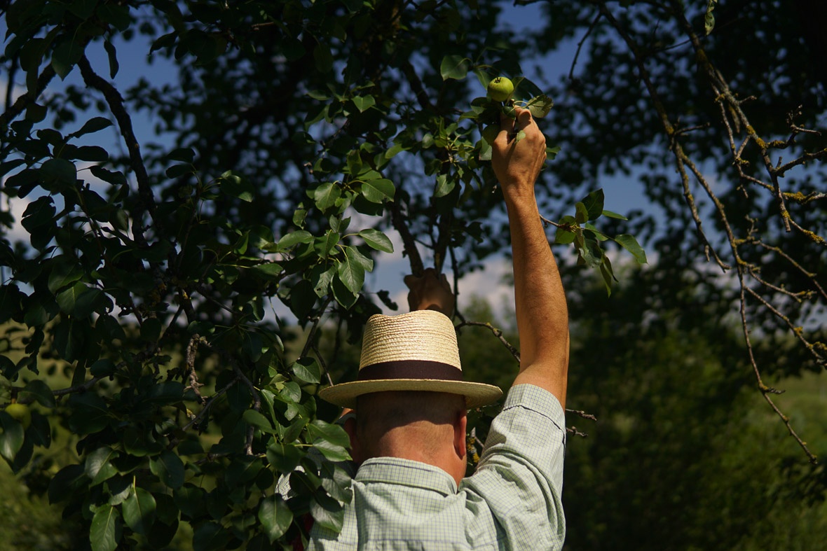 Tankó Zoli, aki a télen a legfinomabb vackorpálinkáját itatta meg velünk, most nincs otthon, de a felesége beenged a kertbe. Ahol felborul picit a térképünk.