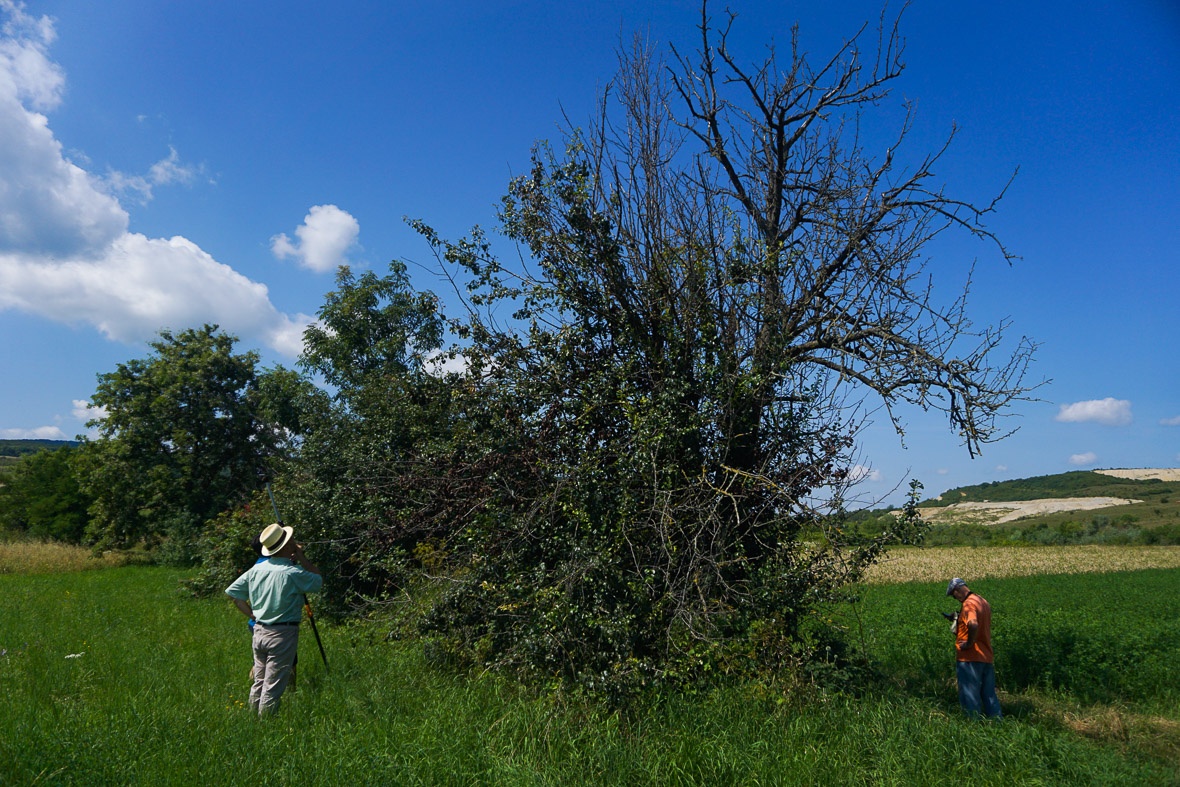 Balázs vackor a Piros János bá féle kertben. Erről nem sikerül használható gyümölcsmintát szedni, idén elég gyenge termés várható vackorból, sok fán egyetlenegy gyümölcsöt sem találunk.