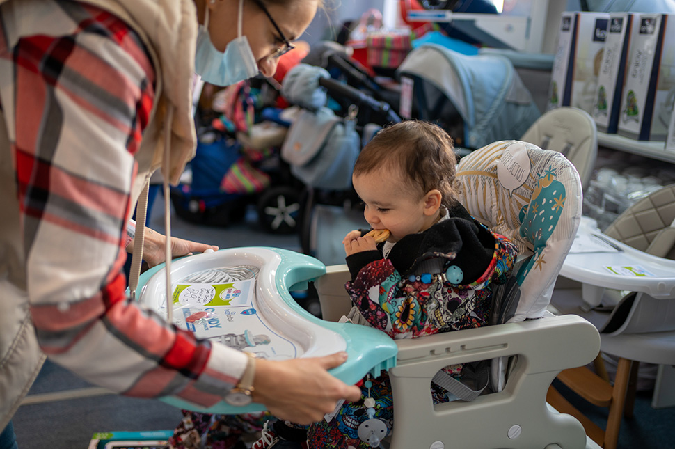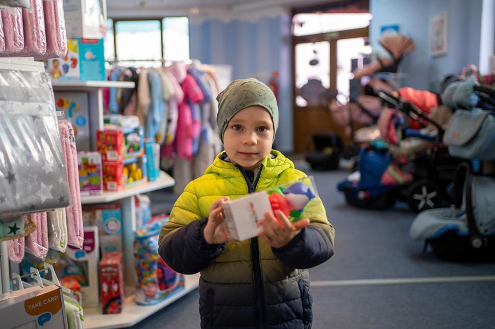 Előd a legboldogabb a mai nap. Amikor megkérdezzük, hány éves, gyermeki őszinteséggel vágja rá: „azt még nem tudom”, de nagymamája elárulja, hogy három. Eredetileg cumit választott volna, de amint meglátta, milyen klassz játékok vannak, rögtön meggondolta magát.