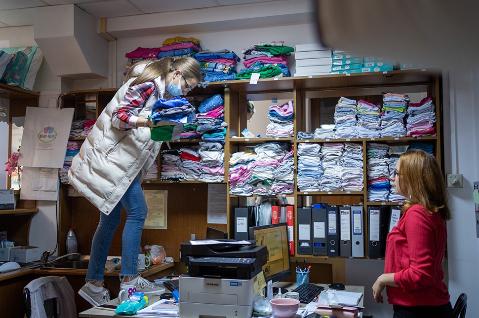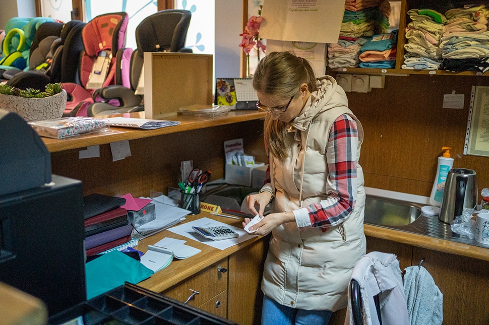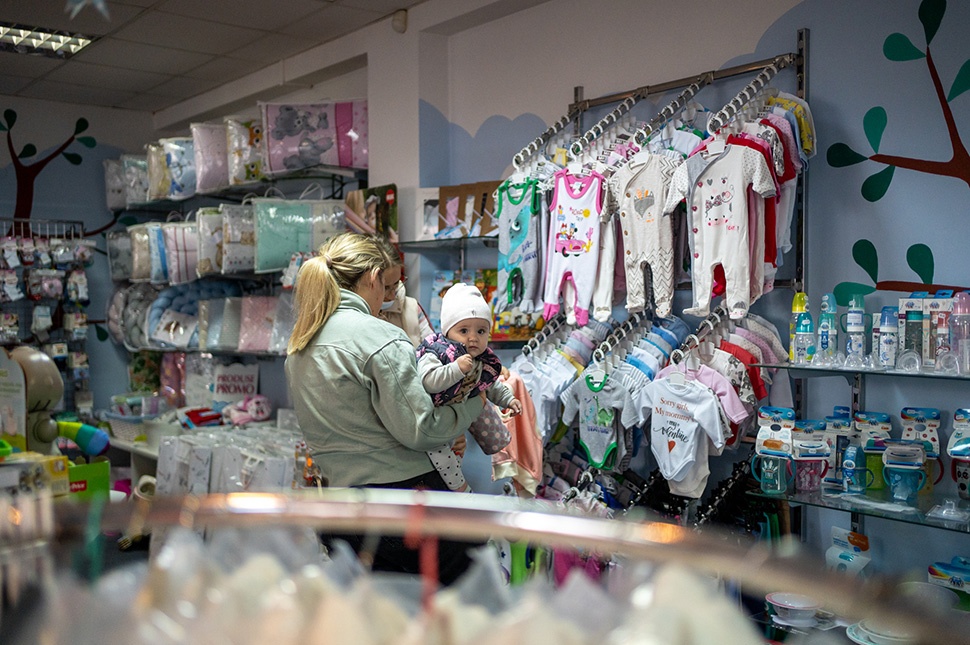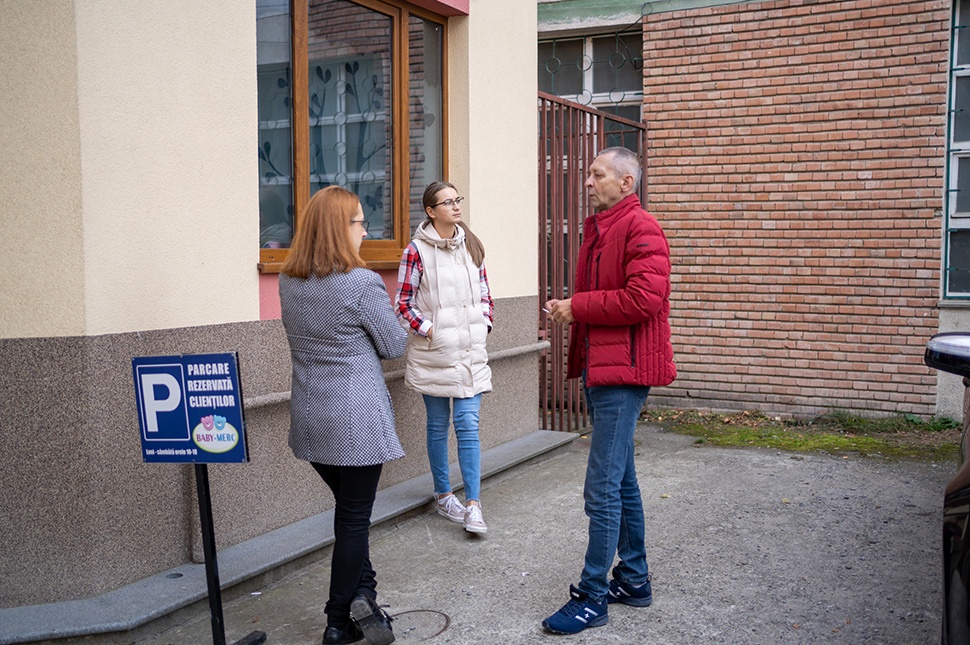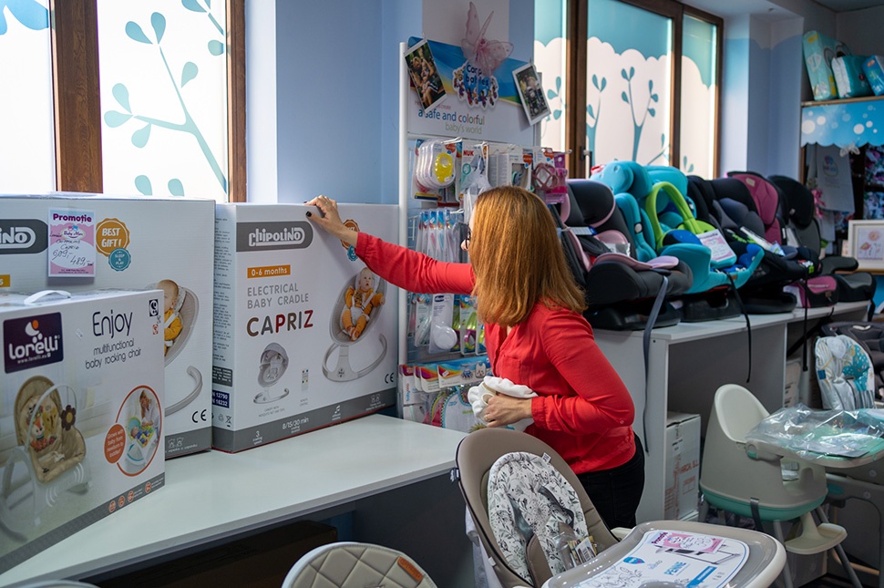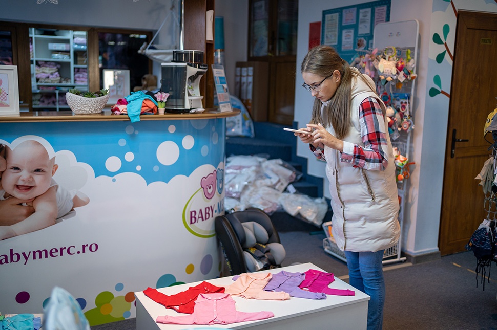 Érkeztek egészen pici, koraszülötteknek való rugdalózók, ezeket kell belistázni, polcra és internetre kitenni. Azonnal érkeznek is az üzenetek a vásárlóktól, hogy milyen színűeket kell félretenni, hiszen ritka kedvező árban vannak, 16 lej egy darab.