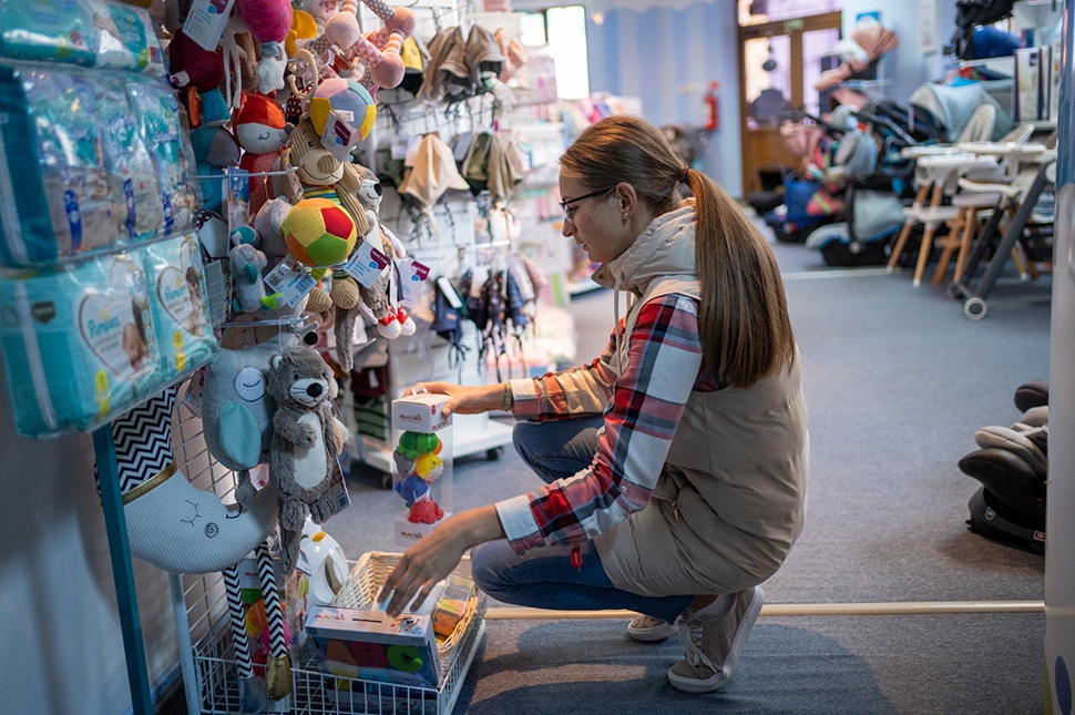 A nap első vásárlója Bence, aki sapiját is innen kapta, most cumiláncot keresnek, de fiús csak a jövő héttől lesz. Körülnéznek egyet, ha már itt vannak. A babakocsikat aprólékosan megvizsgálják, jó lenne egy sportos. S ráadásul ez a modell könnyen, akár egy kézzel is csukható, hátizsák méretűre, így a tömbházban is könnyen lehet tárolni, autóban is elfér.