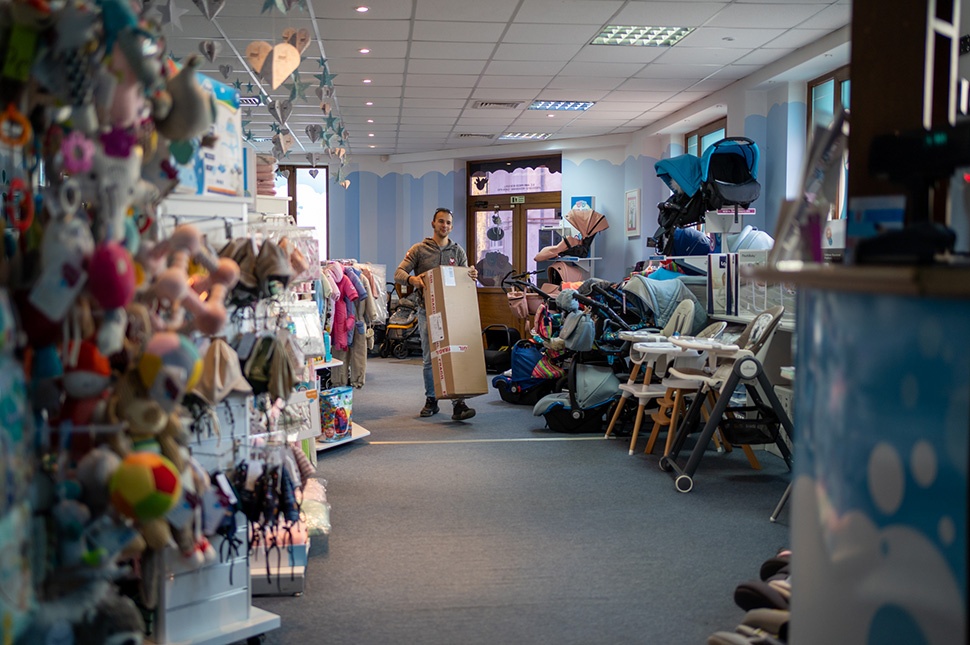 Egy édesapa is bejön: babakocsi-kerék problémák adódtak, így megtudom, hogy az üzlethez tartozik egy szerviz is, aminek az az előnye, hogy nem kell heteket várni egy-egy javításra. Jó tudni, ha esetleg a jövőben itt dolgoznál, hogy erősnek is kell lenni, hogy tudj polcot pakolni, babakocsit, ágyat, ülést szétszedni-összerakni.