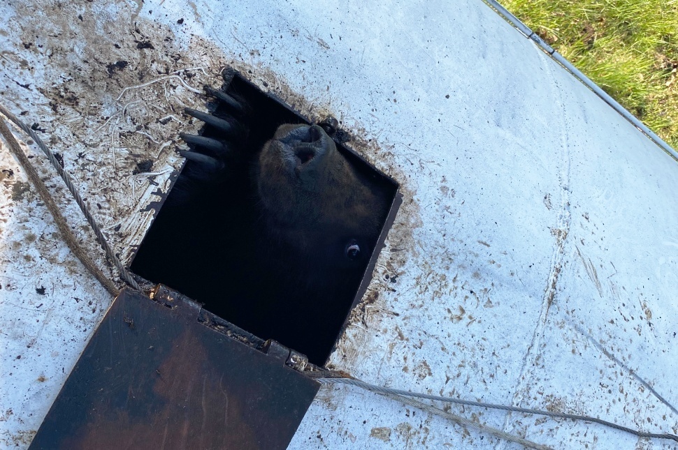 Miután egy teljes éjszakát töltött a csapdában a medve, péntek reggel 8 órakor a vadásztársulat, a csendőrség, az állami és a helyi rendőrség munkatársainak hangjára ébredt. Ahogy felnyitották a csapda tetejének nyílását, rögtön kidugta orrát, mancsaival kaparászott a vadállat, szemmel láthatóan megelégelte a csapdában töltött időt.