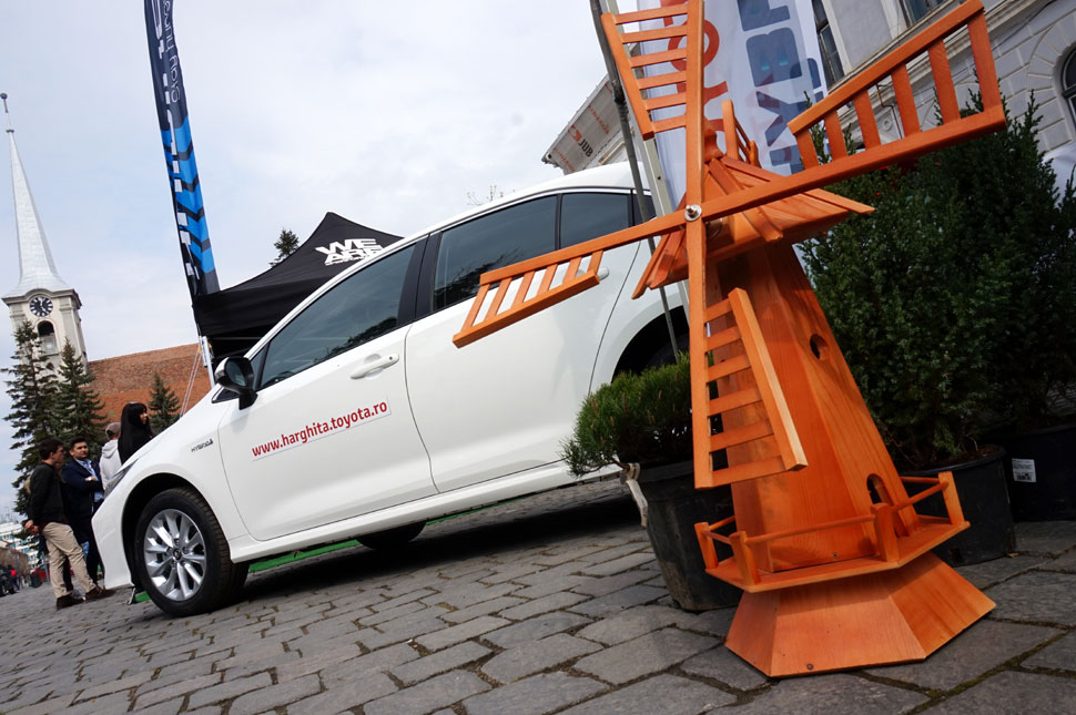 A zöld minipark egyik fő attrakciója a Toyota hibrid autója, amelyet pénteken mutatna be a forgalmazó cég, így nem volt szerencsénk beleülni, de a házigazdák szerint „olyan halk, hogy nem is hallod, amikor felbukkan”. 40 km/h alatt be se kapcsol a benzinmotor, így a városi közlekedésben alig 3-4 literes fogyasztással kell számolni és speciális töltőállomást se kell keresni, mert elektromos motor öntöltésű, tudtuk meg a csodajárgányról, amely a prémium autók árazásával vetekszik.